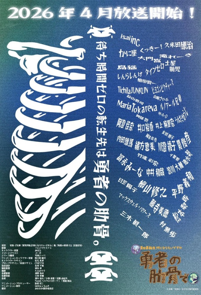 転生先は…「ハーレムかつハッピーエンドなチート勇者、の肋骨」!? アニメーションの常識を覆す、異世界転生アニメが誕生! 舞台は転生先を自由に選べる世界。――しかし近頃は転生希望者の数が増えすぎて「チート持ちハーレム勇者」は待ち時間が5万年! 「魔王」への転生すら千年単位の待ち時間が当たり前。それなら、と主人公が選んだ転生先は「ハーレムかつハッピーエンドなチート勇者、の肋骨」だった! さらに、「ヤドカリ」や「野菜」に「リア充を爆発させる時に使う爆発物」まで、次々と転生を繰り返し!? アニメ映像に加えて、ストップモーション、人形劇、実写など型破りな映像手法でお届けする、塩対応な異世界転生担当の「女神さま」と、トンデモ転生を繰り返す主人公「俺」の痛快異世界転生記!