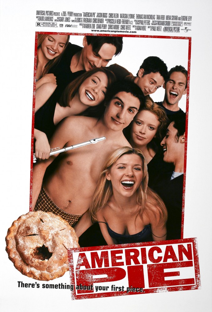 Five high school seniors from East Great Falls High School in West Michigan are good friends: Jim Levenstein, an awkward and sexually naïve nerd whose dad, Noah, offers him pornography and unwanted sexual advice; Chris "Oz" Ostreicher, on the school lacrosse team; Kevin Myers, a virgin and somewhat nerdy leader of the group seeking to lose his virginity to his girlfriend Vicky; Paul Finch, a mochaccino-drinking sophisticate and nerd; and Steve Stifler, a popular but a raucous jock who often throws wild parties when his mother is away, and is the only one of the five who has lost his virginity. Dorky classmate Chuck Sherman claims that at a party hosted by Stifler he lost his virginity. Kevin prompts Oz, Finch, Jim, and Kevin to pledge to no longer be virgins by their high school graduation.