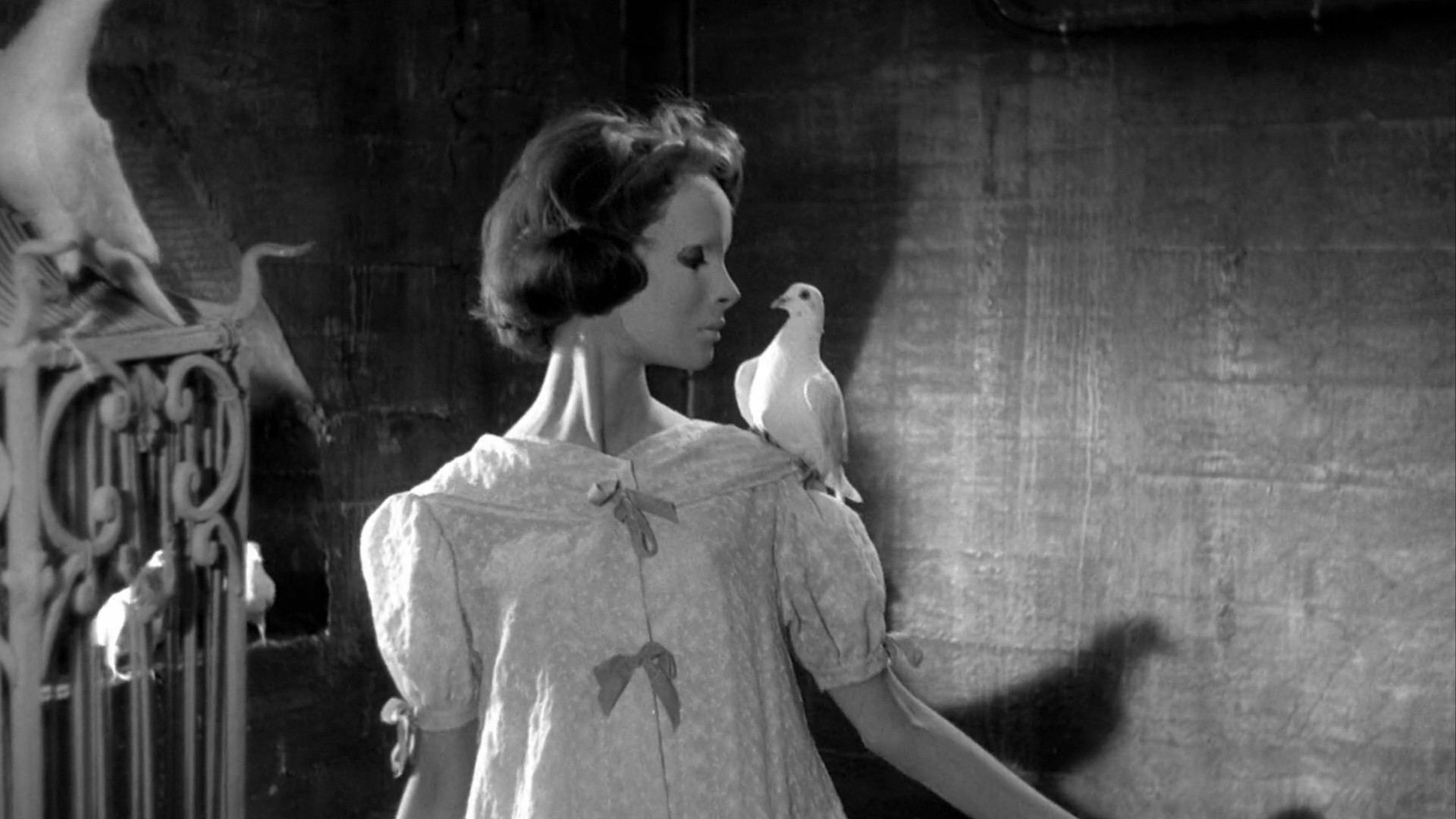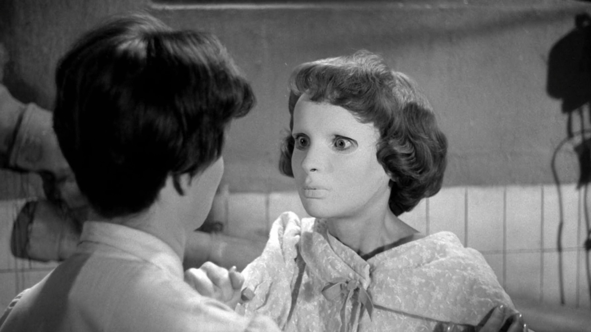 At night just outside Paris, a woman drives along a riverbank and dumps a corpse in the river. After the body is recovered, Dr. Génessier identifies the remains as those of his missing daughter, Christiane Génessier, whose face was horribly disfigured in an automobile accident that occurred before her disappearance, for which he was responsible. Dr. Génessier lives in a large mansion, which is adjacent to his clinic, with numerous caged German Shepherds and other large dogs.