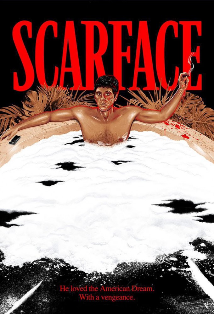 Al Pacino veste a pele do refugiado cubano Tony Montana, que se torna um barão da droga na Florida mas comete o erro fatal de começar a consumir o seu próprio produto.