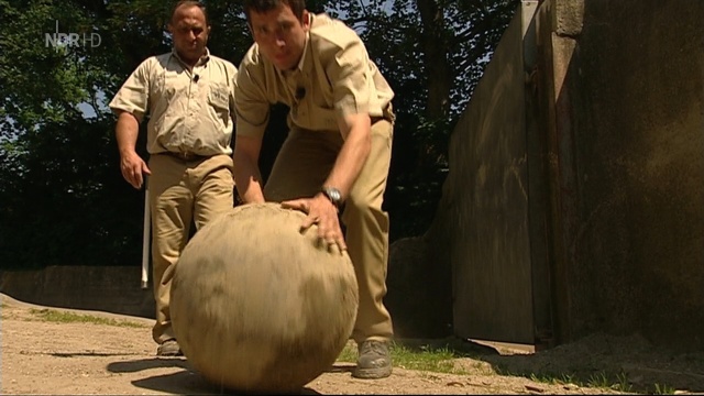 Wenn Elefantenjunge Thai Ball spielen möchte, muss Thorsten Köhrmann schon spezielles Spielgerät heranschaffen. Weil Thai einen gewöhnlichen Fußball sofort zerquetschen würde, bekommt er eine richtig schwere Kugel aus Vollgummi. Die schießt er dann mit Vorliebe in den Graben oder in den Pool, wo Thorsten und sein Kollege Christian Wenzel ihn dann mit vereinten Kräften wieder herauswuchten müssen. (Text: ARD)