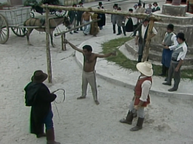 Simão é capturado. Leopoldo escreve uma crítica no jornal. João Bala ergue um pelourinho para açoitar o rapaz. Augusto aproveita uma brincadeira no piquenique e beija Carolina.