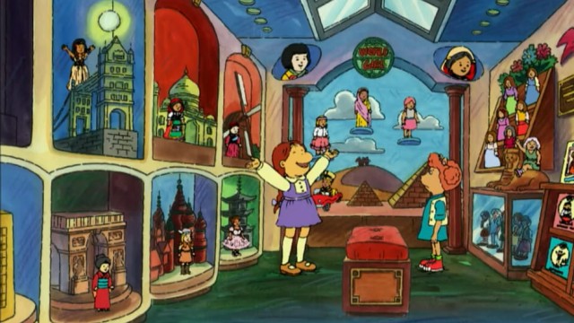 When everyone at school starts inventing their own languages, George tries to create one that is easy for everyone to use. Muffy, Sue Ellen, and Francine visit a brand new doll superstore called World Girl World. Muffy attempts to complete her collection, Francine tries to find a doll she likes, and Sue Ellen tries to find a replacement accessory for the only doll she owns.
