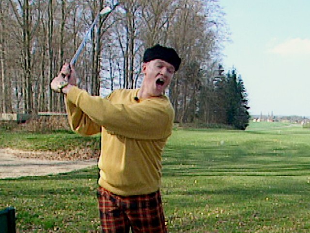Kenned svinger jernet på golfbanen. Kim er i newsroom'et med Mogens Rubinstein.