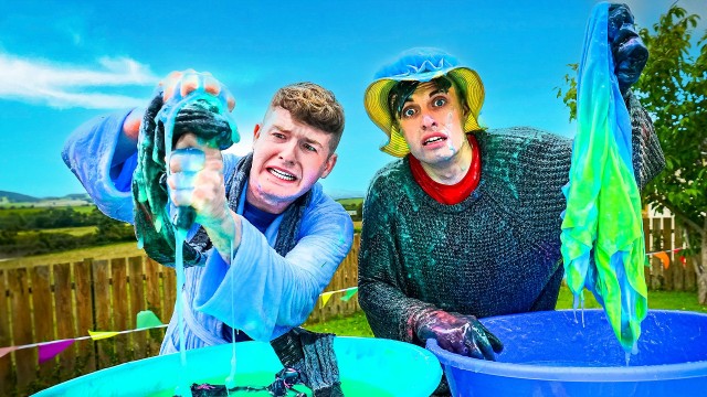When Adam and Joe hear crying, the last thing they expect is their very own slime baby to care for! Which daddy will avoid spilling the slime and dodge the Wheel of Doom?