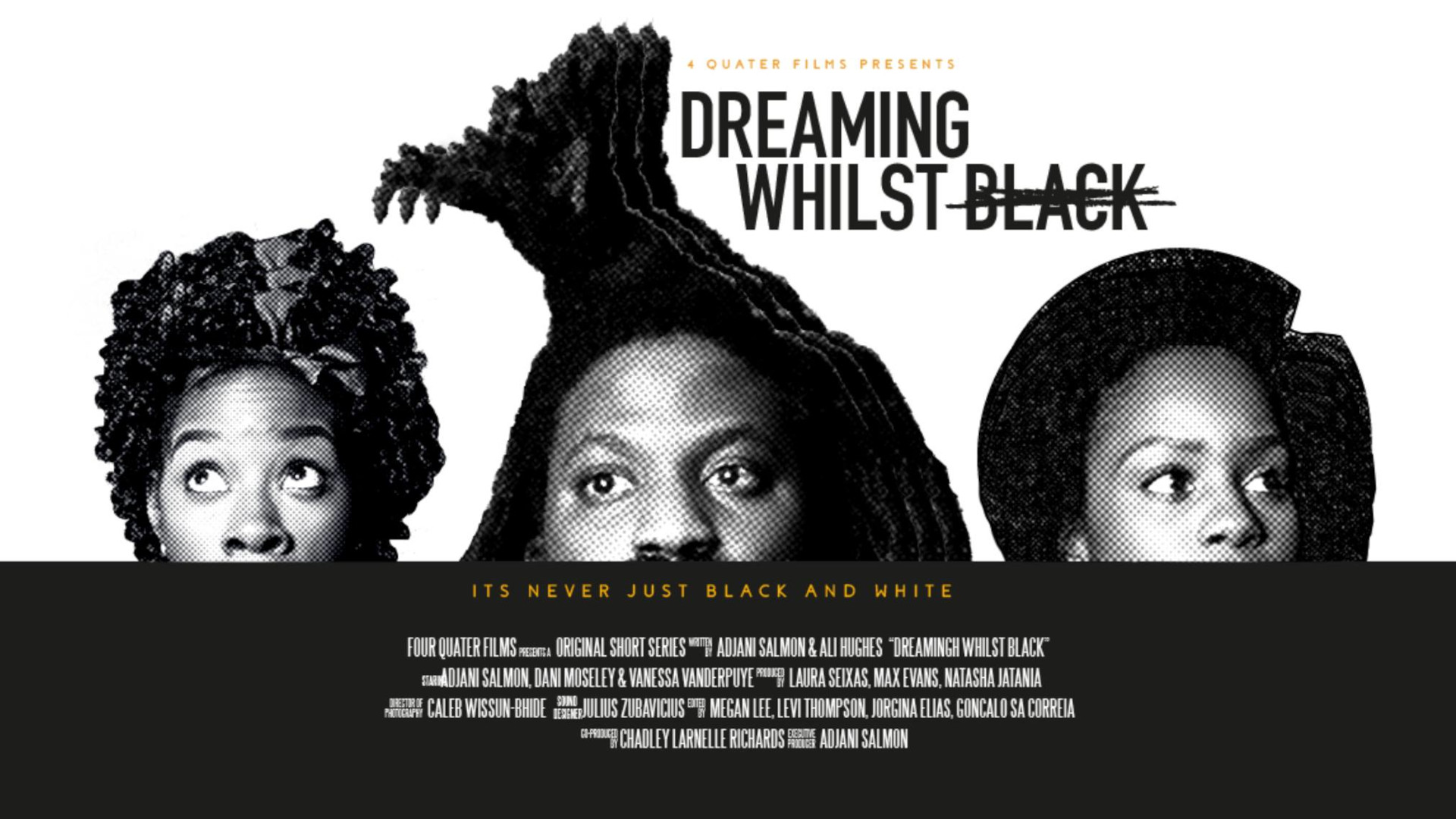 Dreaming Whilst Black is a 9-part comedy series primarily offers a wearily wry commentary on the sort of clumsy racist encounters its creator and star, Adjani Salmon, experiences every day. It follows a young but naive British Jamaican filmmaker, Kwabena (Salmon), as he struggles to navigate between his dreams and reality. The show explores the day-to-day struggles of being an independent creative trying to survive in London. It also highlights the nuances of how one's race impacts this struggle.
