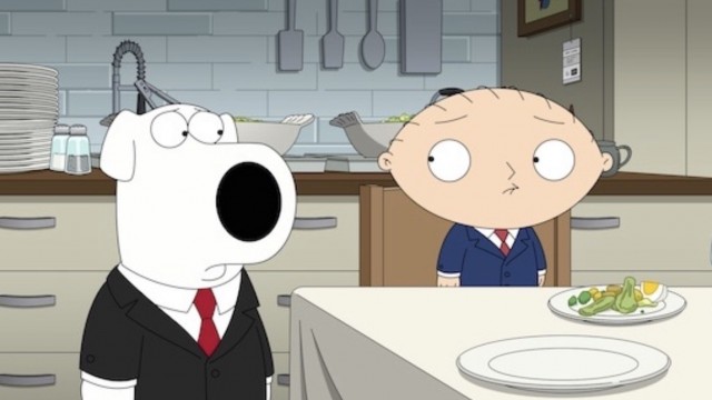 Meg pursues an unlikely friendship with an NFL great; Stewie and Brian host a dinner party at a home furnishing store.