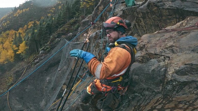 Les écailleurs s’attaquent à une paroi rocheuse près de la station Baker. Deux conducteurs de train entament un long voyage vers Fermont.