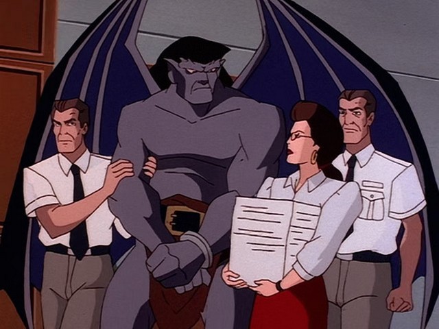 The gargoyles try to stop a jewel store burglary, but the gargoyles end up the main suspects when the thieves escape. When the police capture Goliath, he asks the others not to break him out, confident that the justice system will find him innocent.