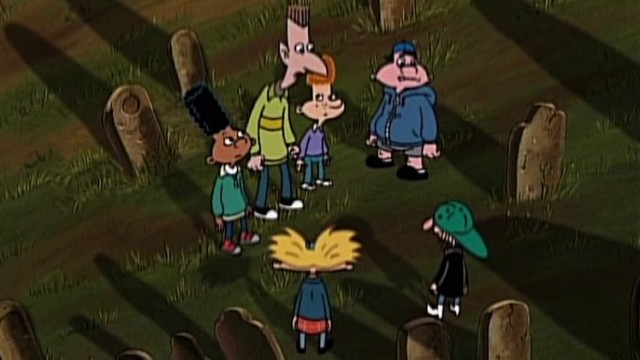 First Part: In his urban legend, he tells the story of the ghost bride, and how she murdered her husband after he left her for her sister. Turns out she's buried in the cemetery near the gang's neighborhood. She comes back from the dead every anniversary of the murders. Arnold, Gerald, Eugene, Harold, and Stinky are scared twice by Helga and Curly, by them pretending to be the ghost of Cynthia Snell, the Ghost Bride. Second Part: Gerald gets jealous because he thinks Jamie O. is trying to steal the girl he likes, when, actually, the girl likes Jamie O.