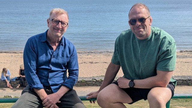 Yr actor ffilm a theledu Paul Rhys sy'n dysgu Cymraeg tro ma efo help ei ffrind Dyfan Dwyfor.
