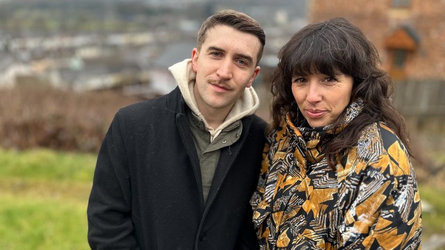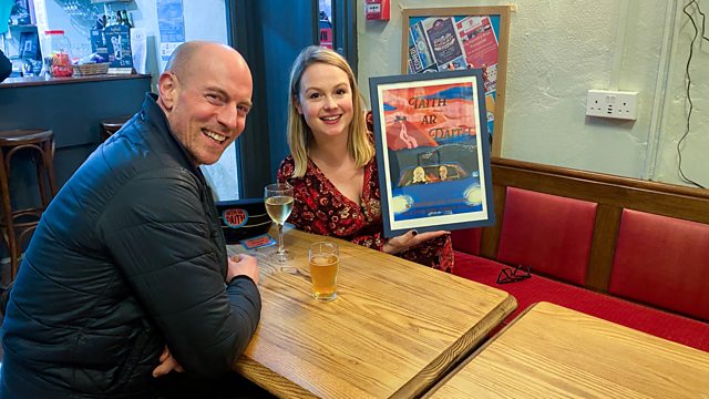 Y DJ Katie Owens a'i mentor, y cyflwynydd amryddawn Huw Stephens, sy'n teithio Cymru gyda'r nôd o helpu Katie i ddysgu Cymraeg.