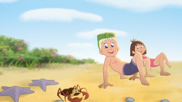 Tottes mormor har inviteret Lotte og Totte på stranden. Men Lotte er bange, for det er første gang, at hun er afsted uden mor og far. Det store hav er skræmmende, og hun vil helst ikke ud i vandet. Heldigvis har Totte dykkerbriller, og med dem kan man se alle de sjove ting, der er under vandoverfladen. Så mon Lotte prøver at dykke for første gang?