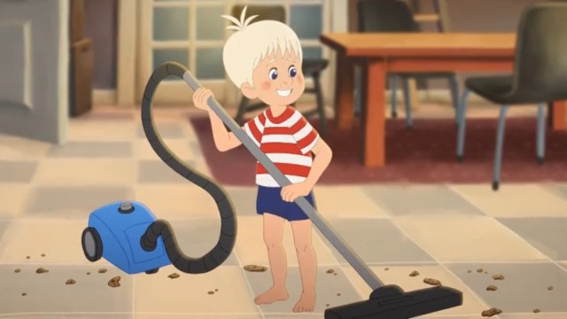 Lotte og Totte har fundet krukken med småkager, som de meget hurtigt kommer til at spise lidt for mange af. Da Lotte vil stille krukken på plads, inden far opdager det, falder den ned, og der er krummer og småkager overalt. Heldigvis har Lotte og Totte lært, hvordan man støvsuger, så de går straks i gang med at gøre rent. Støvsugeren viser sig dog at være et rigtigt "monster", og hvad gør man egentlig, når den spiser bilnøglerne? Kan man så aldrig køre bil mere?