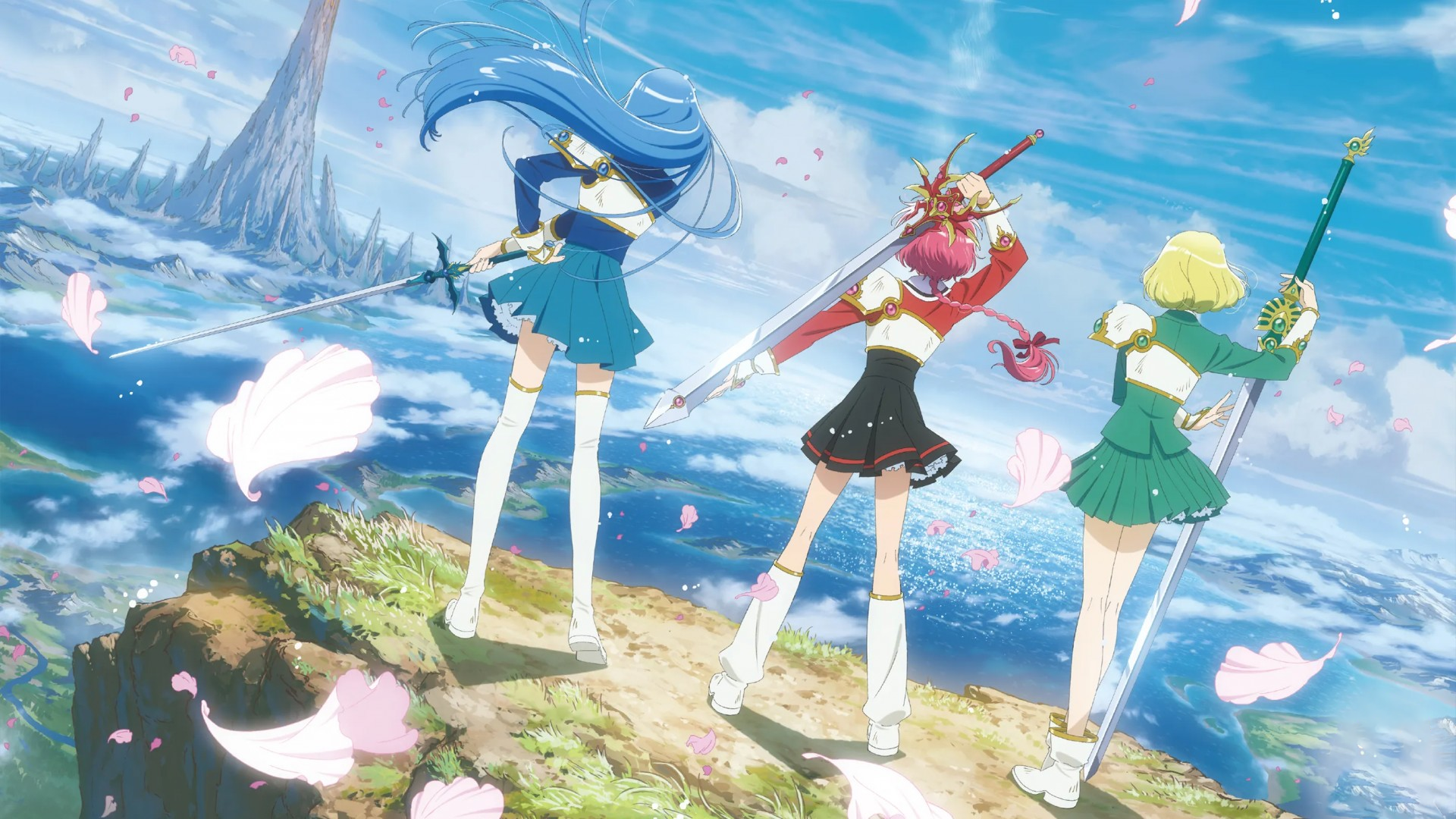 While on a field trip to the Tokyo Tower in 1993, three eighth-grade girls, Hikaru Shidou, Umi Ryuuzaki, and Fuu Hououji meet by chance. After hearing a girl's call for help from the illuminating gleam outside the window, the girls find themselves transported to the other world of Cephiro. Guided by Guru Clef, they embark on a journey to save Cephiro as the Magic Knights.