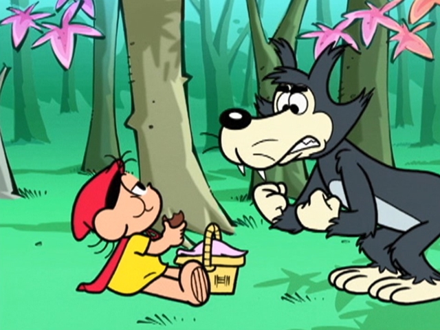 Todo mundo conhece a história da Chapeuzinho Vermelho e do Lobo Mau. Principalmente quando Chapeuzinho resolver comer todos os pães de mel da vovó, para desespero do lobo, que também adora os pães de mel! Bom, se a história não é bem assim, pelo menos a Magali achou uma "doce aventura".