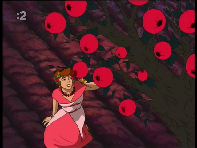 Persephone, daughter of Demeter (goddess of the harvest), longs to be free of her over-protective mother. When she runs away to find adventure, Persephone stops for a drink beside an ebony pool, unaware that she is being watched by the god, Hades. Hades, having lived his life in dreary darkness, falls instantly in love with this bright and cheery girl who promises to visit the lonely god and bring warmth to his cold heart. While the young goddess teaches Hades to dance, laugh and smile, Demeter, sickened over the loss of her beloved daughter, searches for her in vain, neglecting her harvest and bringing winter to the world. Meanwhile, Hades has fallen desperately in love with Persephone only to discover that she now misses her home and wants to return. But Hades knows what Persephone doesn't -- that if she eats any food of the underworld she will never be able to leave. Coaxed to eat three pomegranate seeds, Persephone becomes trapped in Hades' dark kingdom. But the seeds of love she h