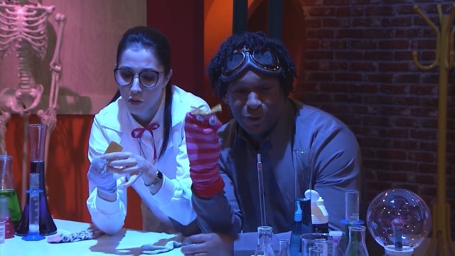 Doutor Bóris impressiona a doutora Hipotenusa com uma de suas habilidades, levando a uma reflexão sobre a natureza das perguntas.