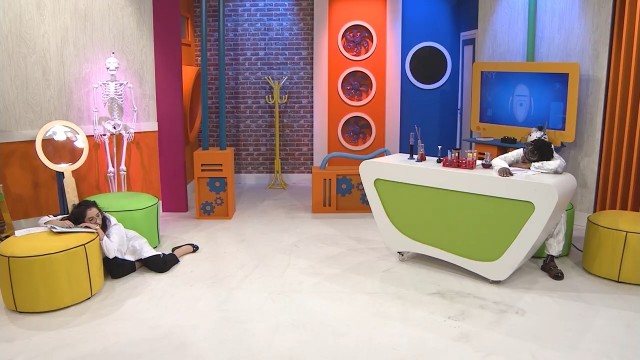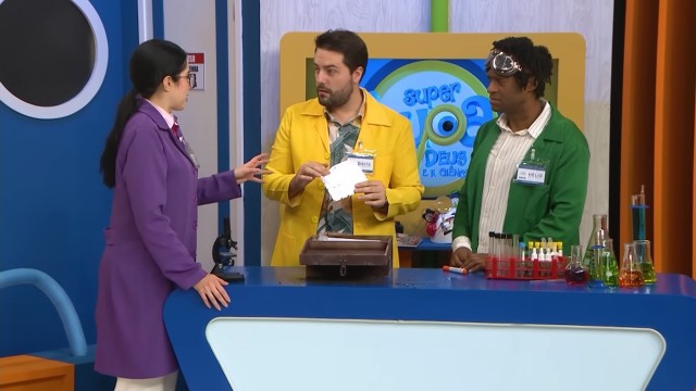 Doutor Hélio exibe sua nova tabela periódica. Os doutores começam uma discussão sobre letras maiúsculas e minúsculas.