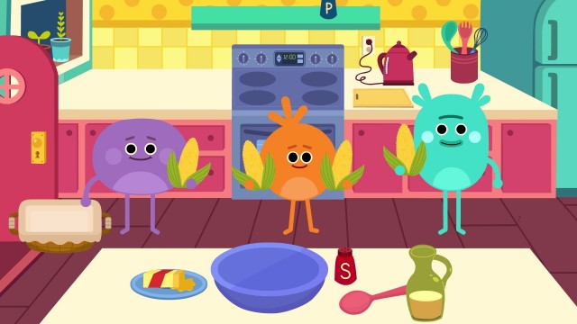 Tonight is Movie Night! In this cartoon, The Bumble Nums are going to watch their favorite movie…and they need a warm, tasty snack to munch on. What’s today’s recipe? Groovy Movie Popcorn featuring the secret ingredient: four popcorn cobs! Can the Bumble Nums get the secret ingredient to the kitchen in time for Cooking Countdown, and give us a happy ending? Watch and see!