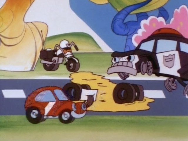 Doctor Crankenstein, a psychotic scientist, creates a monster but needs the brain of an automobile in order to control it, so he hopes to capture either Wheelie or Chopper.