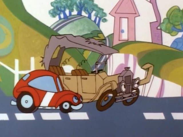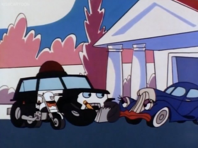 A vampire disguised as a race car and capable of transforming into a vampire bat relentlessly tries to steal oil away from other cars, including Wheelie.